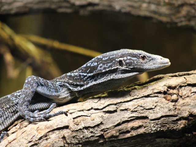 We have one blue-spotted tree monitor on exhibit in the Reptile Building. Her name is Lily.