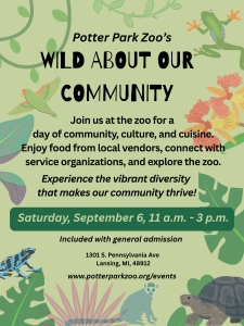 Included with general admission, this special event celebrates the diversity of our community. Join us at the zoo for a unique experience featuring local food establishments and service organizations showcasing the best of what they have to offer. Wild About Our Community is not just an event; it’s an opportunity to learn, appreciate, and celebrate the unique flavors and services that make our community thrive! Don’t miss out on this fantastic occasion.