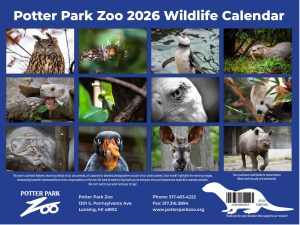 Bring a touch of zoo enchantment home! Our 2026 Wildlife Calendar showcases stunning photos from winners of our Zoo Photo Calendar Contest. Every month brings a beautiful image of one of our animals along with space for marking special events. Available at the AniMall gift shop and over the phone at 517-244-8042. Every calendar purchased goes towards supporting wildlife conservation.